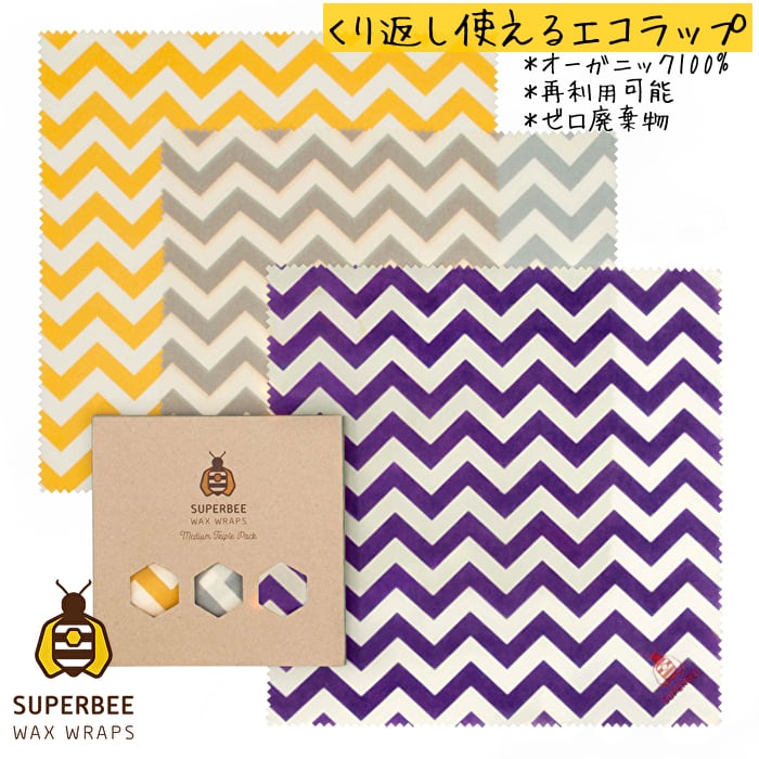 ZigZag / L | 蜜蝋 SuperBee Beeswax Wraps ミツロウラップ | 再利用可能なフードラップ | オーガニック エコロジー みつろう エコラップ | サスティナブル | Superbee WaxWraps -ミツロウラップ-