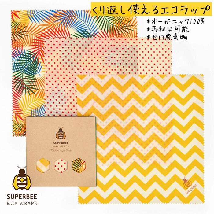 ・SuperBee エコラップは再利用可能のミツロウで作られたラップです。 GOTS認定100%オーガニックコットン生地、ミツロウ、オーガニックココナッツオイル、ゴールデンツリーレジンを使用して手作りされています。